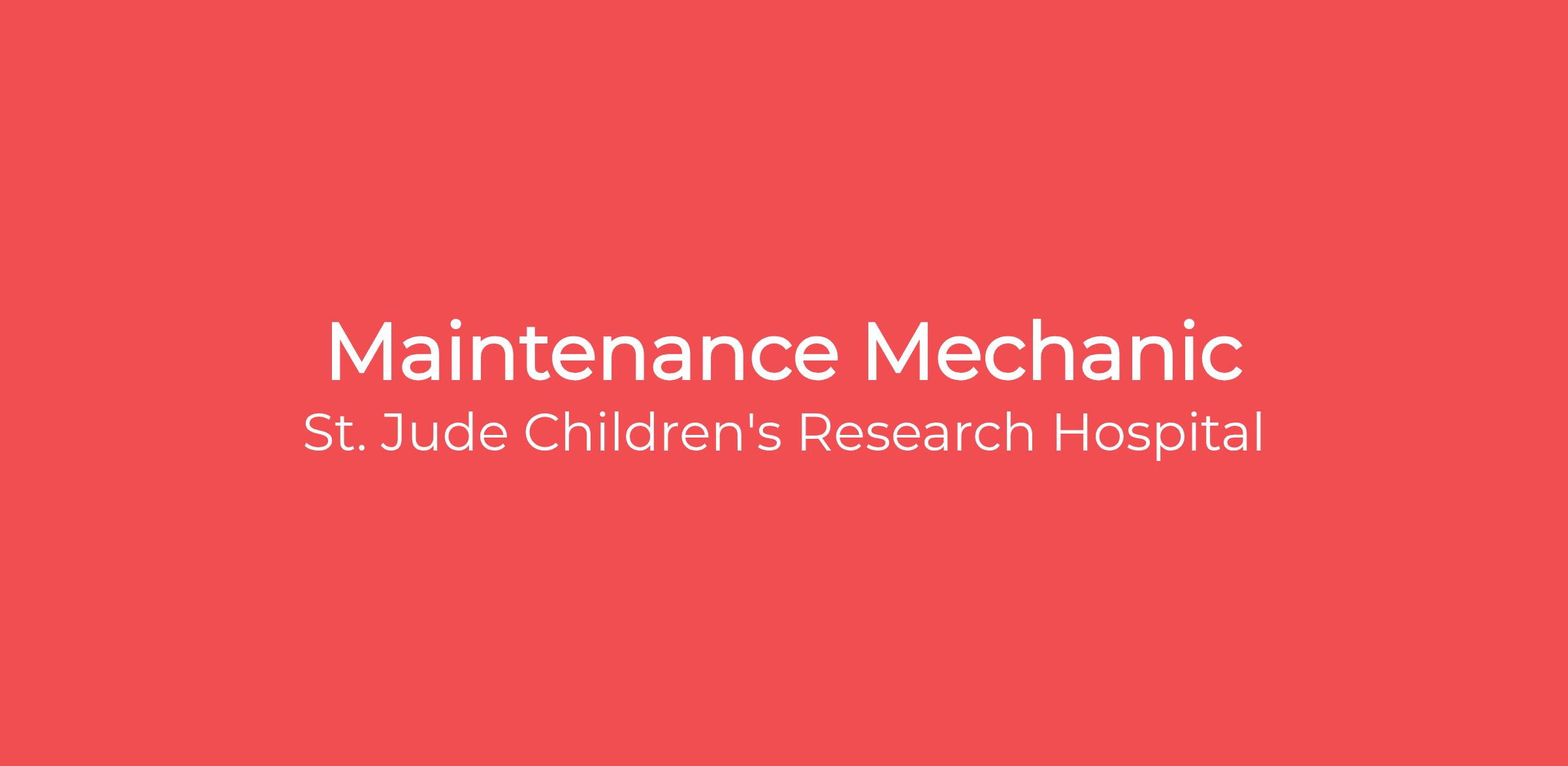 In recognition of certain U.S. state and municipal pay transparency laws, St. Jude is including a reasonable estimate of the compensation range for this role. This is an estimate offered in good faith and a specific salary offer takes into account factors that are considered in making compensation decisions including but not limited to skill sets, experience and training, licensure and certifications, and other business and organizational needs. It is not typical for an individual to be hired at or near the top of the salary range and compensation decisions are dependent on the facts and circumstances of each case. A reasonable estimate of the current salary range is $23.50 - $39.00 per hour for the role of Maintenance Mechanic.